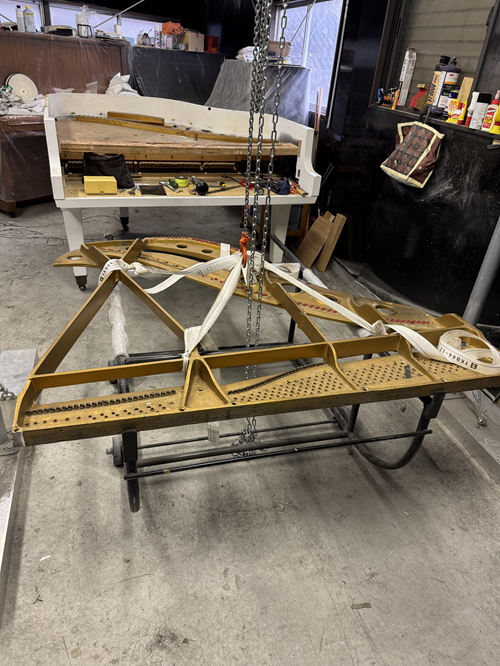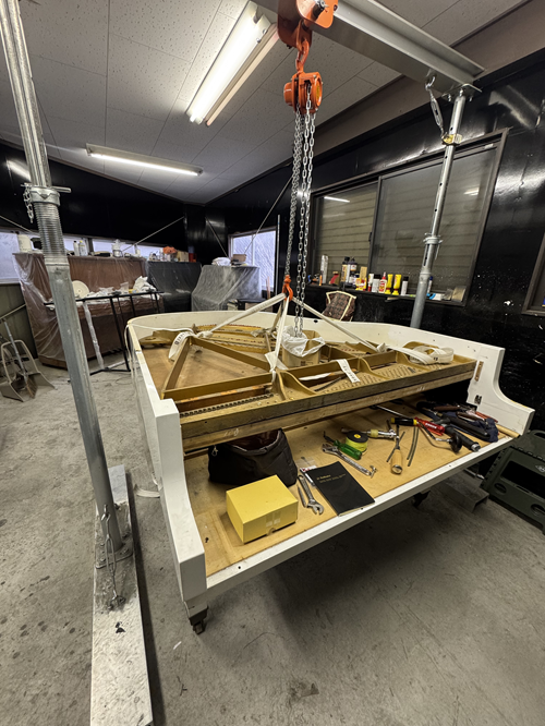 ということで、弦を外したらフレームもクレーンで持ち上げ~